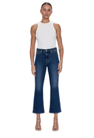 The bootcut you'll reach for again and again. Lennon sits at a high rise with a slim-to-the-body fit that hugs from hips to knee before flaring at the calf for perfect proportional effect. The cropped ankle bootcut creates a flattering silhouette that works with any shoe. Crafted from high stretch fabric that moves as you do while maintaining its expert shape. Broadway brings sophisticated depth with its dark wash, enhanced by subtle fading and whiskering that feels intentional, never overdone.