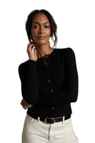 the maureen top is your fitted button-down, upgraded. made from our luxe rib, this long sleeve style is soft, sculpted, and hits right below the belly button. with just the right amount of stretch and a clean silhouette, she layers with ease and holds her own when worn solo.
