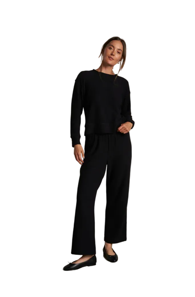 The selma is the pullover you reach for when the air turns crisp and the days feel slower. made in our brushed sweater jersey, it’s warm on the inside and smooth on the outside. the kind of layer you pull on before stepping out for a morning coffee or settling in at home. pairs perfectly with the matching marcie pant or your favorite denim. drop shoulder and wide hem make it a casual look in our elevated fabric.