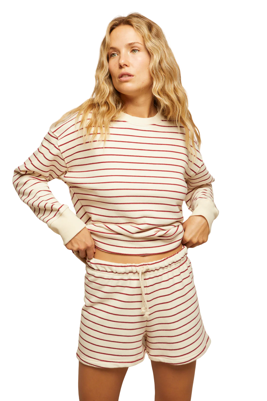 Everyone’s favourite easy short in a sought after stripe. relaxed with a flexible elastic waistband and natural drawcord. This short is perfect on everyone. Made with a signature french terry cotton. Pair it back to our Tyler Sweatshirt or Blondie Tank.