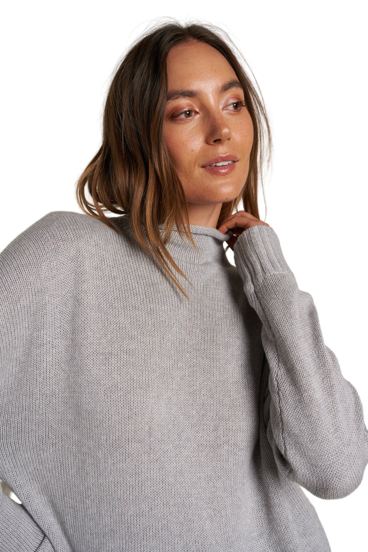 The nova sweater is crafted from our new cotton-cashmere blend, designed for a soft hand feel with just the right amount of warmth. this full-length silhouette hits at the hips and features a stylish roll-neckline that keeps you warm without the weight of a traditional turtleneck.